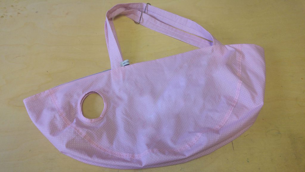 Diesmal habe ich das Modell in Pastellrosa mit Punkten und grauem Innenfutter genäht.